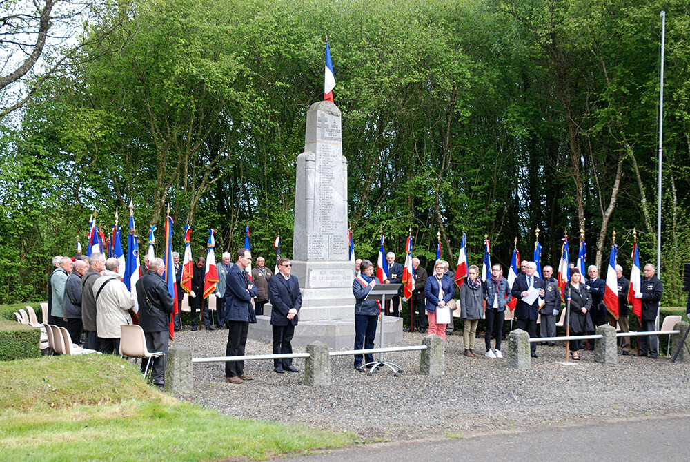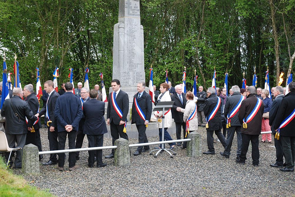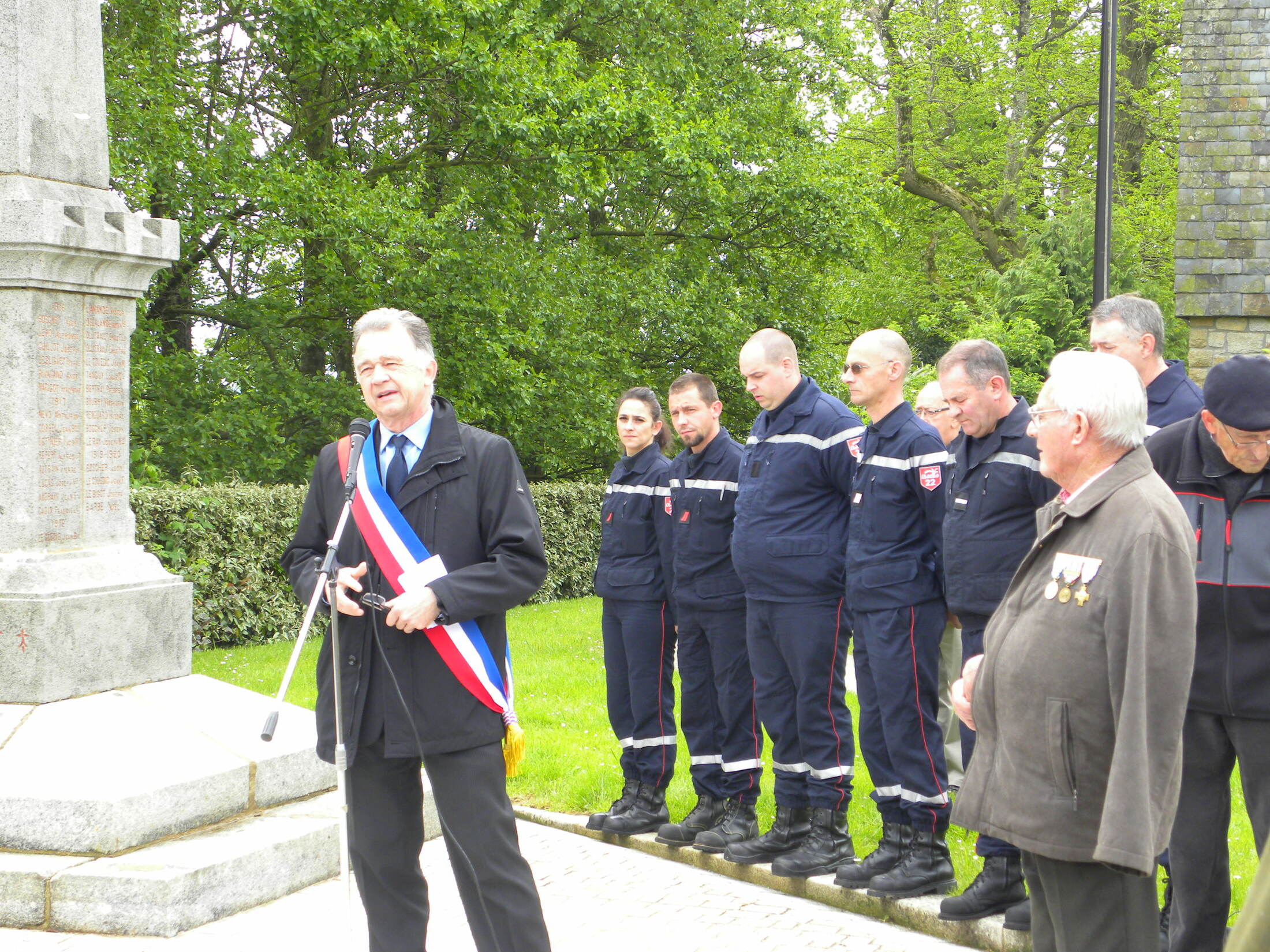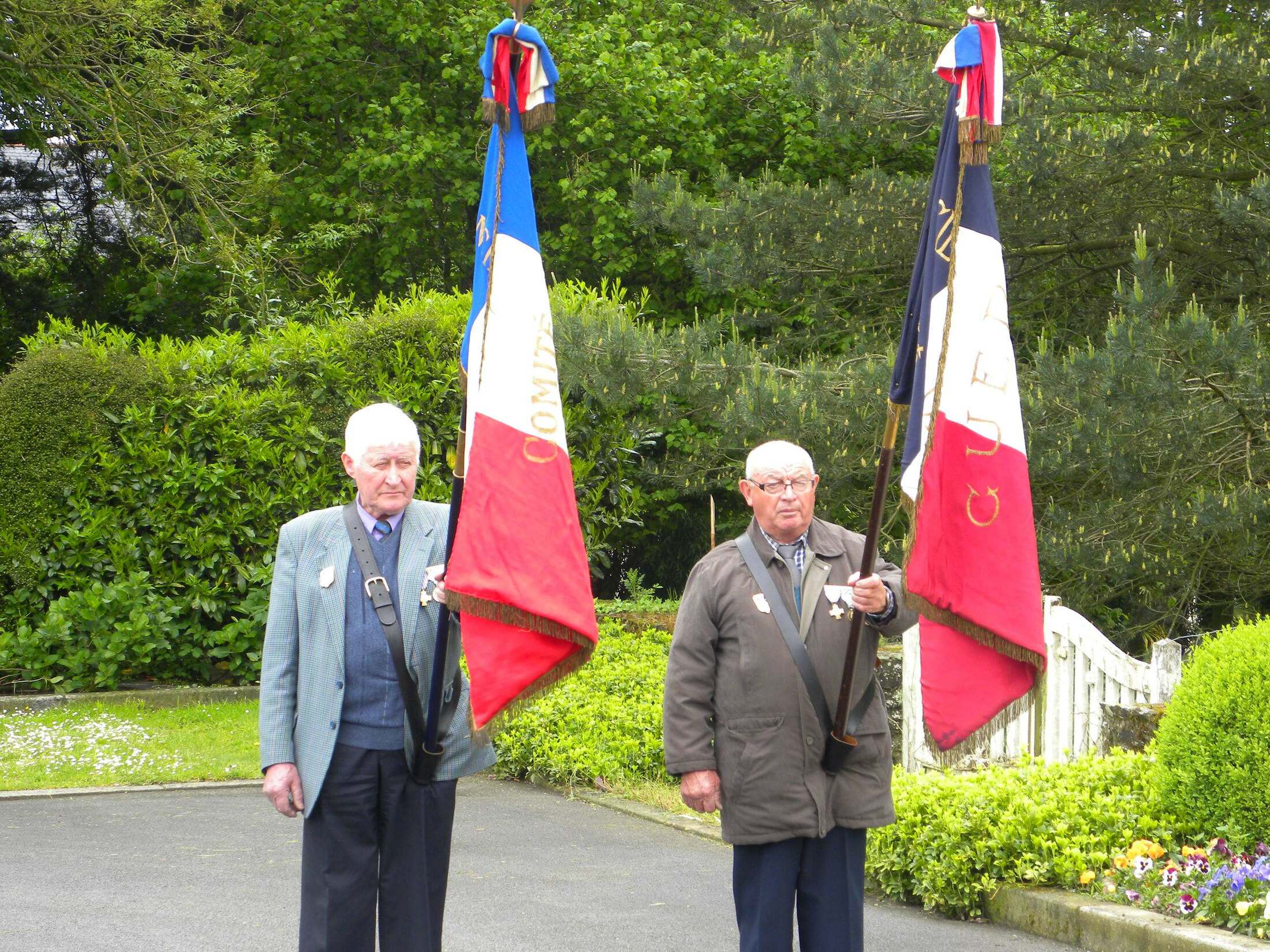 Le 8 mai 1945 signe la date de la victoire des Alliés sur l’Allemagne nazie et la fin de la Seconde Guerre mondiale en Europe marquée par l’annonce de la capitulation de l’Allemagne. C’est aussi l’occasion de rendre hommage aux résistants, combattants et déportés de notre région. Cet hommage a commencé sur le lieu de massacre, situé dans la forêt de Lorge, «La Butte Rouge». C’est à cet endroit qu’un charnier de 55 corps a été trouvé. 55 personnes qui ont été torturées et massacrées, pendues ou fusillées avant que leurs cadavres soient entassés dans des fosses. Parmi les noms gravés sur la stèle du monument édifié en ce lieu de commémoration, on peut noter celui de Ange Jigourel de Saint-Caradec. Le 8 mai 2015 nos deux porte-drapeaux ont fait le déplacement, Alain Jégo, dont c’est sa 20 ième participation et Gustave Le Guyadec succède à Jean Longuy qui a longtemps accompagné Alain. Ils étaient accompagnés du maire, Alain Guillaume et de Rémi Mahoudo, président de la FNACA.