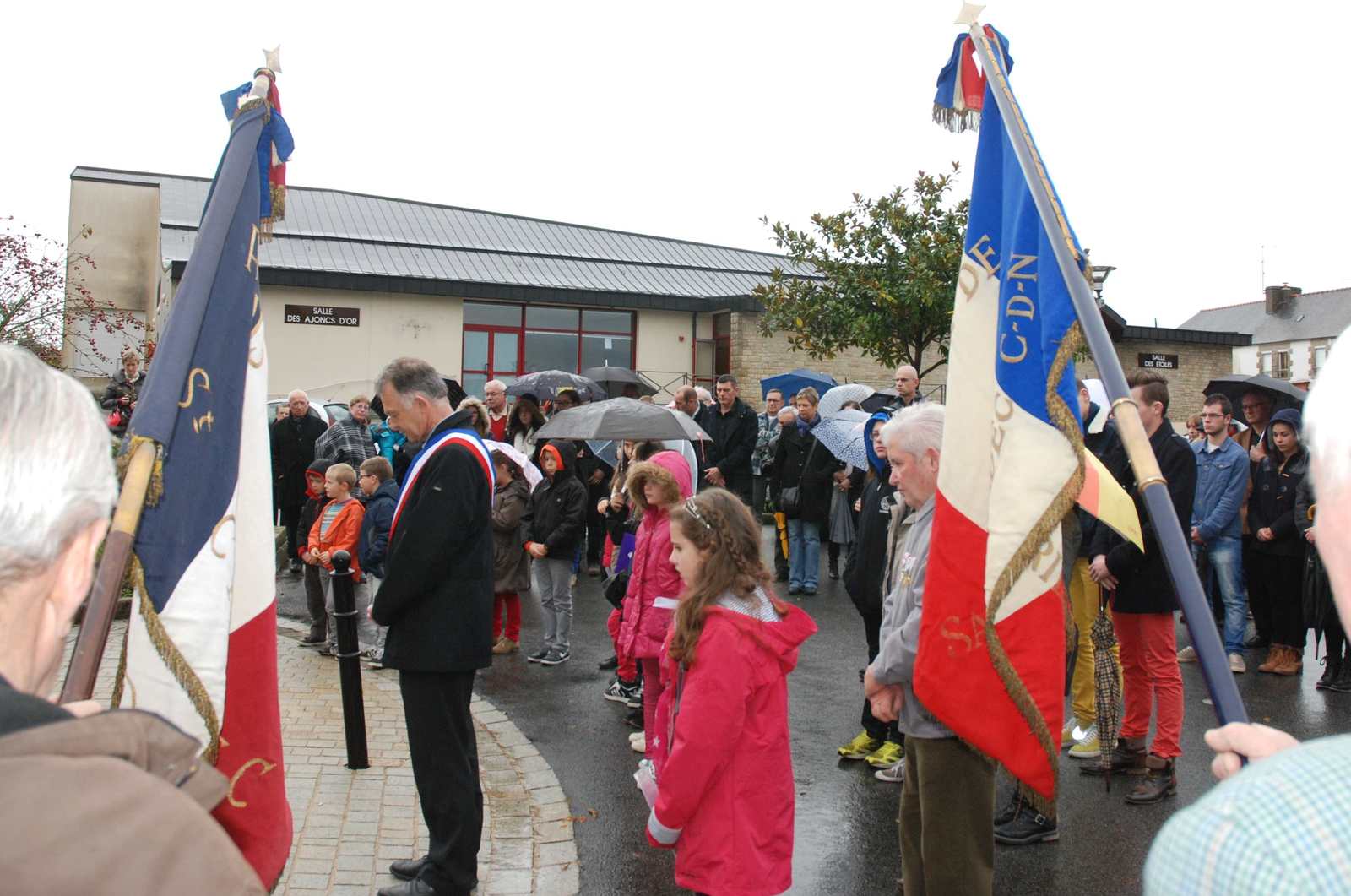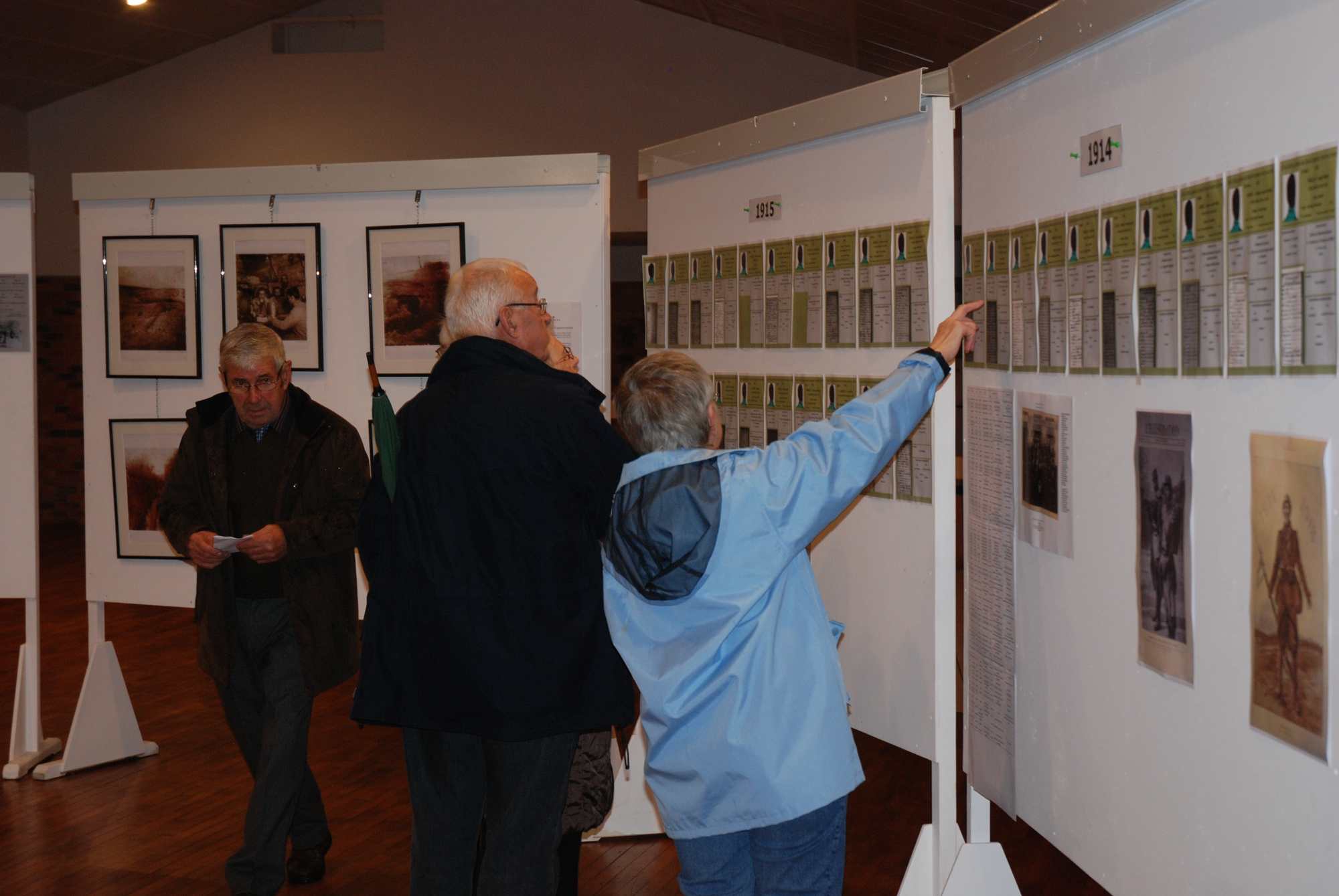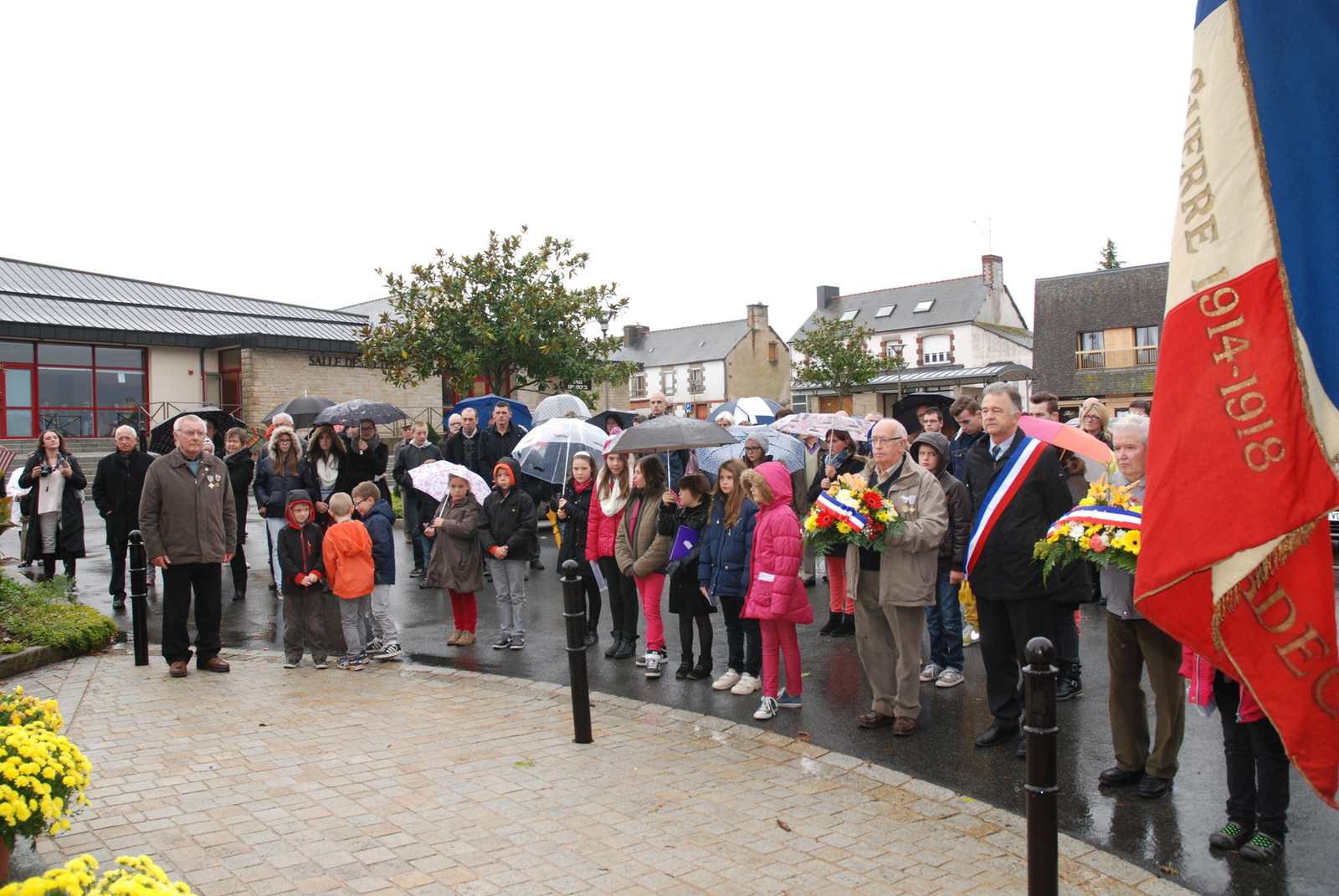 Afin de commémorer dignement cet anniversaire et de rendre hommage aux soldats de la commune, décédés au front ou faits prisonniers, la municipalité avait préparé une cérémonie qui fut émouvante. Une exposition faite de photos issues d’un collectage du Cac Sud 22, de la réalisation d’une fiche par soldat, d’objets (prothèses, masques à gaz, casques, douilles d’ obus...) prêtés par des particuliers a permis à chacun de découvrir et d’échanger sur ces terribles évènements. Émotion au moment de la lecture, par les enfants des deux écoles, des noms de tous les Caradocéens morts au front ou des suites de leurs blessures; émotion encore quand les petites voix de ces enfants ont entonné la Marseillaise, accompagnés de Francine Noël puis du public. Le dépôt de gerbe au monument aux morts suivi d’une minute de silence concluait la cérémonie. A noter la présence des porte-drapeaux et des pompiers en tenue.